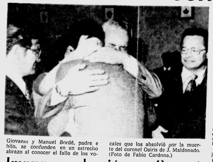 En marzo de 1978, tras ocho meses en prisión, los Borde (padre e hijo) fueron absueltos por los vocales del juicio militar. La defensa, liderada por el abogado Antonio José Cancino, logró argumentar que no se comprobó una conexión directa entre los pilotos y los sicarios ejecutores.
